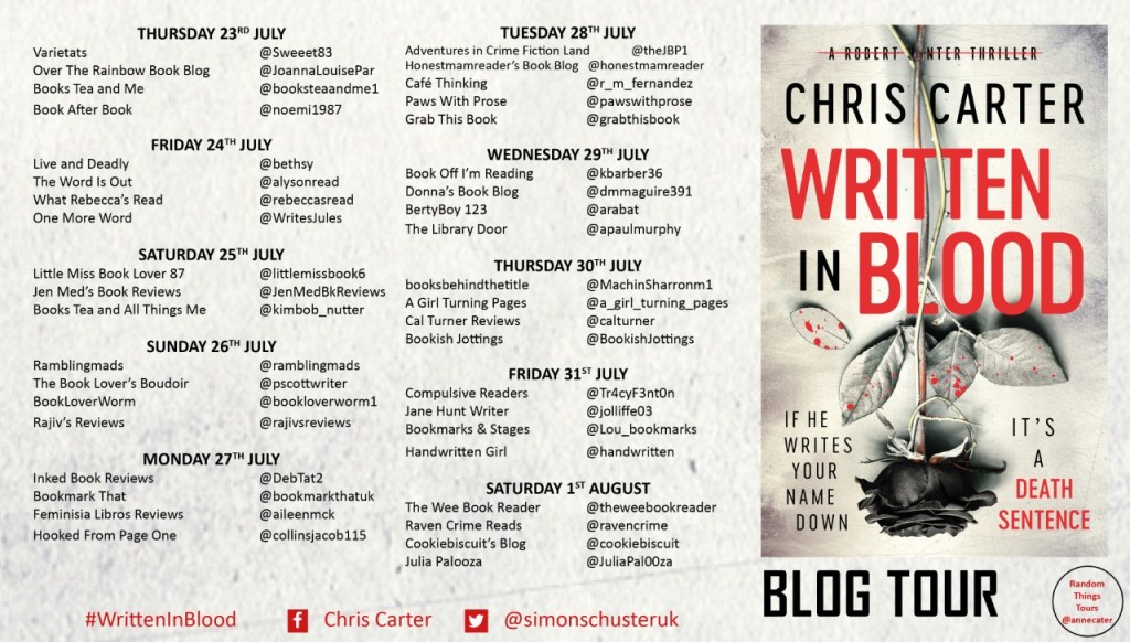 Written In Blood is another fantastic addition to the Hunter Series which in my opinion keeps getting better and better. It’s going to be a hard book to review as I don’t want to give anything away.