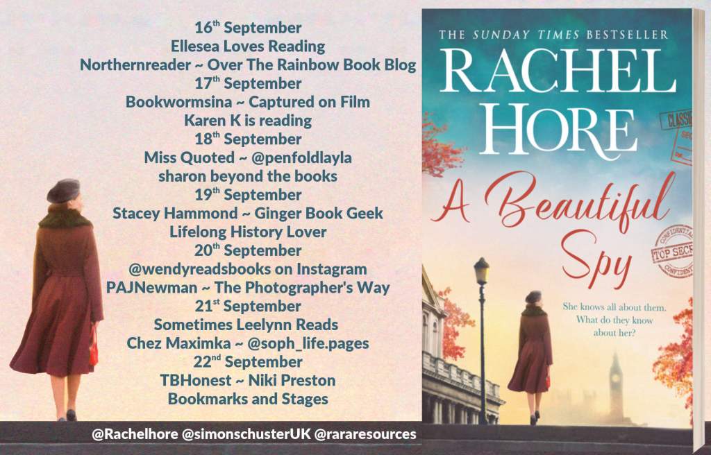 Good morning everyone! I’m re-sharing my review of the fantastic A Beautiful Spy by Rachel Hore today in celebration of the paperback release and as part of the Rachel’s Random Resources tour.