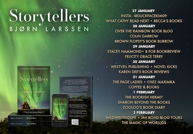 The Storyteller is a unique, absorbing read that I thoroughly enjoyed. Firstly I loved the location of this book which was so wonderfully described that I felt transported to the village able to feel the cold and see the beautiful aurora displays. The cold help add to the atmosphere in the village as it made the village seem more cut off somehow and more insular.