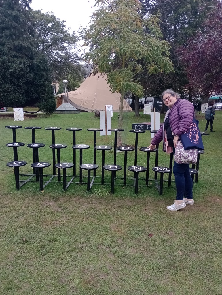 I always enjoy looking around the grounds at the festival and seeing what features they have. This year was no exception with lots of fun things for people to do while they are waiting for their author events. I loved the book seating area which I thought was clever and the type writer keys which I thought would be great for photo opportunities. The grounds were even prettier at night with pretty lights on show!