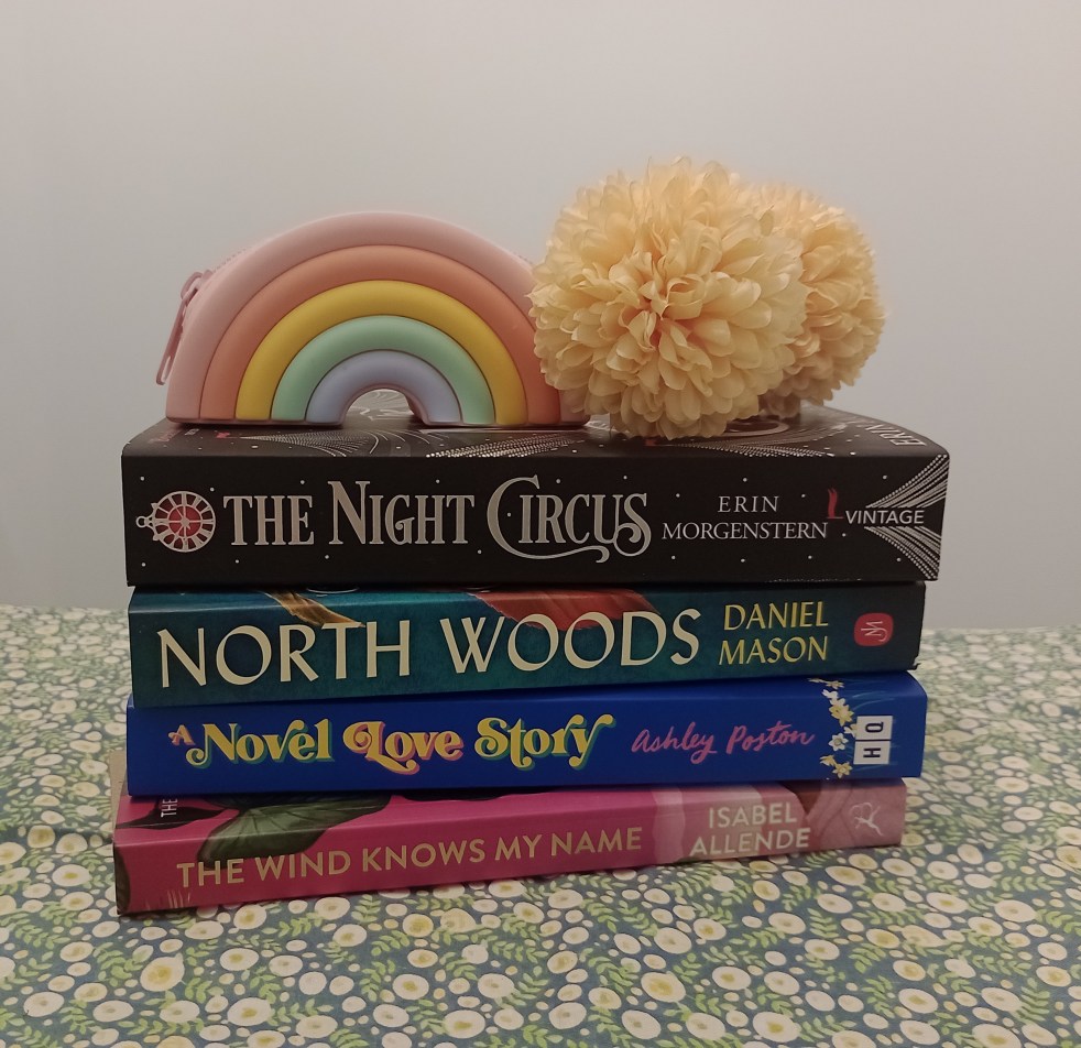🎪The Night Circus by Erin Morgenstern 🍎 North Wood by Daniel Mason 💕A Novel Love Story by Ashley Poston 🌬️The Wind Knows My Name by Isabelle Allende